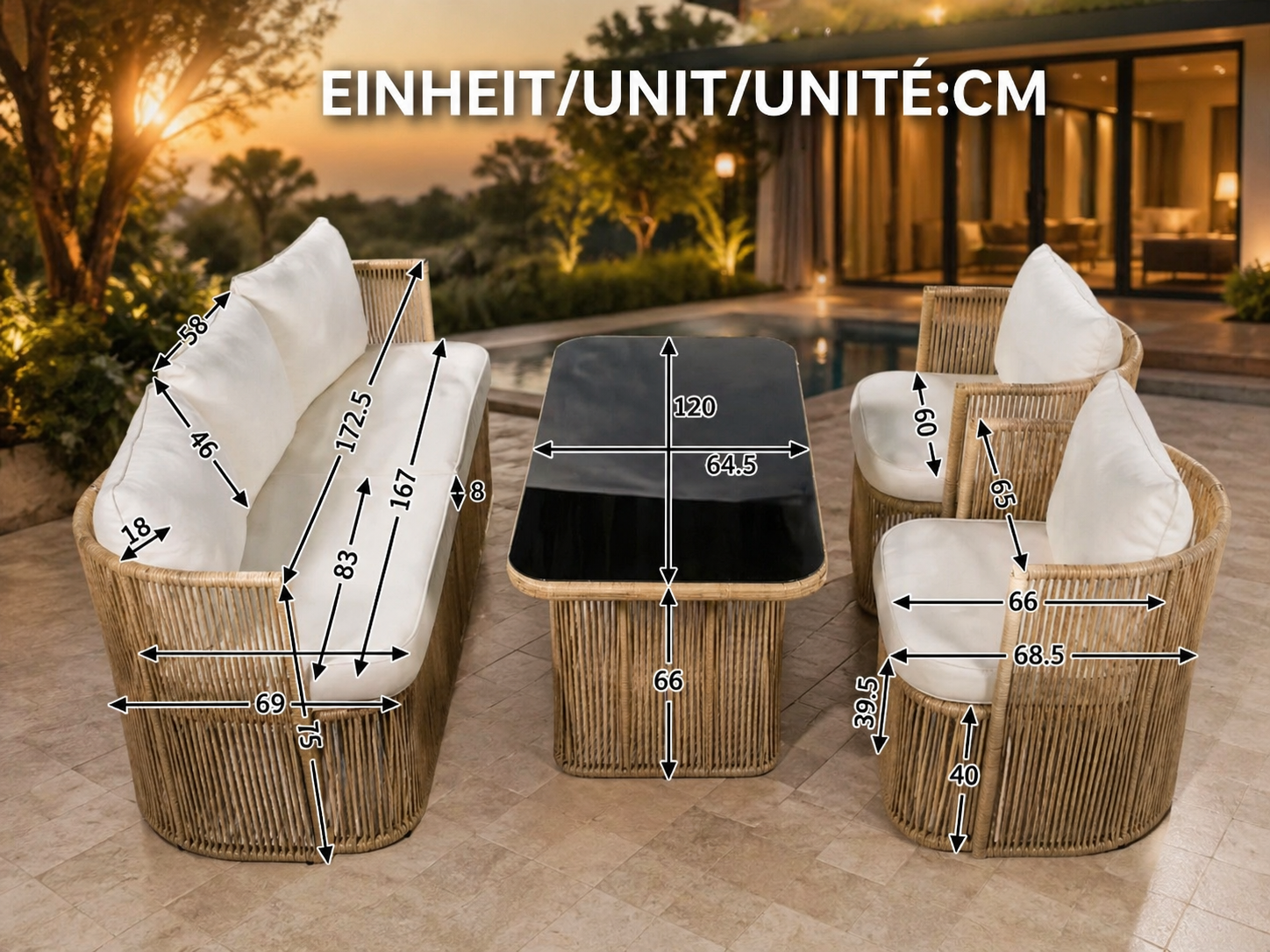 Le linee raffinate, i materiali intrecciati e i cuscini morbidi creano un perfetto equilibrio tra design e comfort.